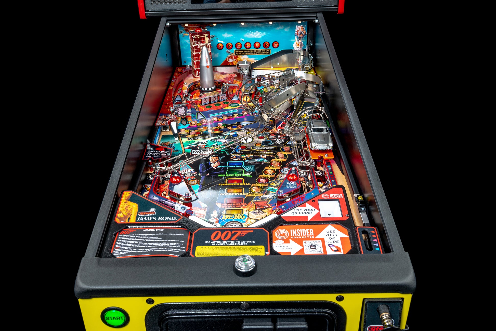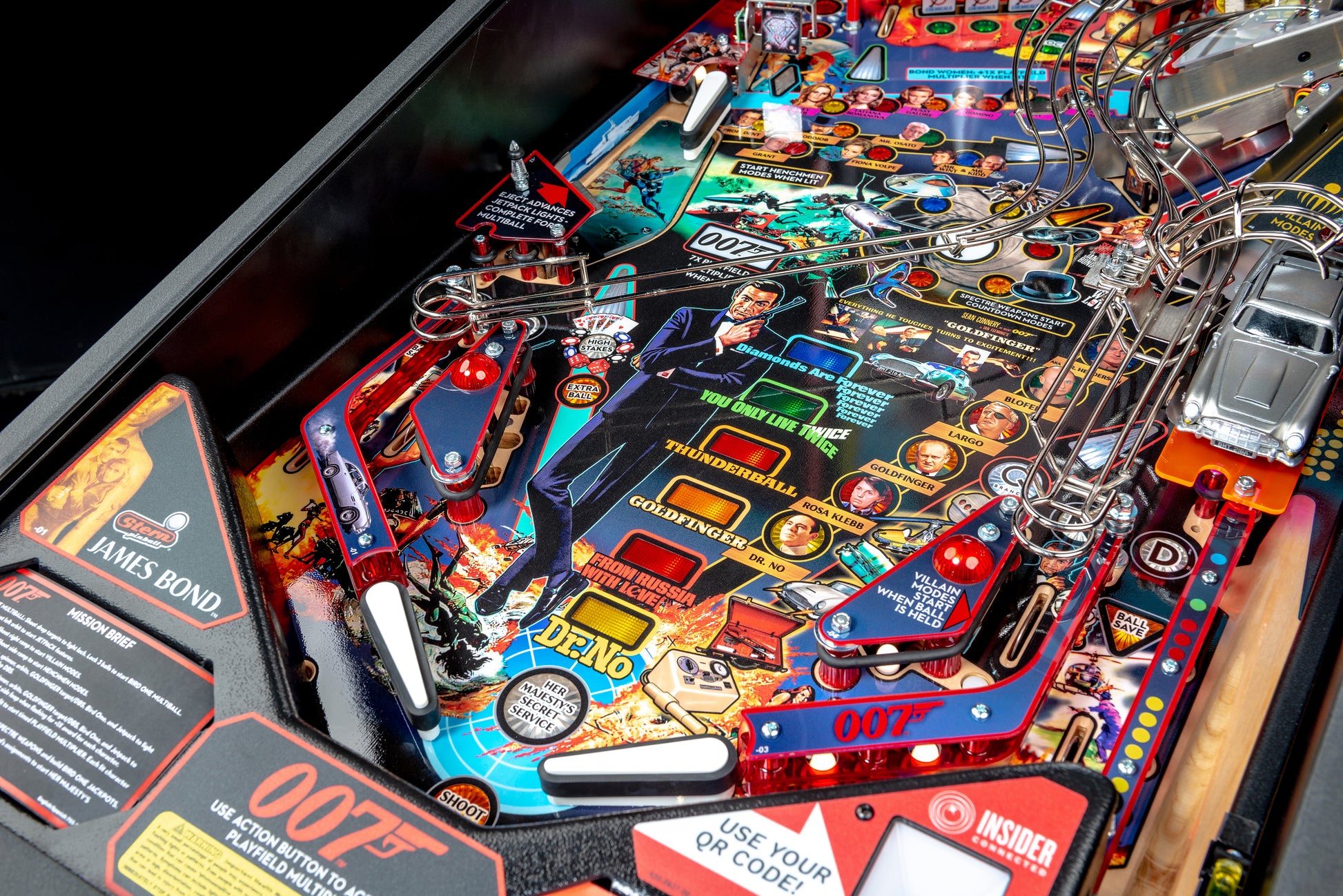 Zu den Flipperautomaten von James Bond 007 gehören Sterns preisgekröntes Insider ConnectedTM-System, mit dem Spieler mit dem Spiel interagieren können, und ein globales Netzwerk von Spielern auf vielfältige Weise. Durch Insider Connected können Spieler den Fortschritt verfolgen, neue spielspezifische Erfolge erzielen, mit der Spielergemeinschaft interagieren und an Promotionen und Challenge-Quests teilnehmen. Insider Connected bietet auch ein betreiberorientiertes Toolset, um das Standortspiel über die Standort-Rangliste zu steuern, die Spielertreue aufzubauen, die Leistung zu analysieren, Anpassungen aus der Ferne vorzunehmen und die Maschinen zu warten. Die Registrierung für Insider Connected ist unter insider.sternpinball.com/ möglich.
