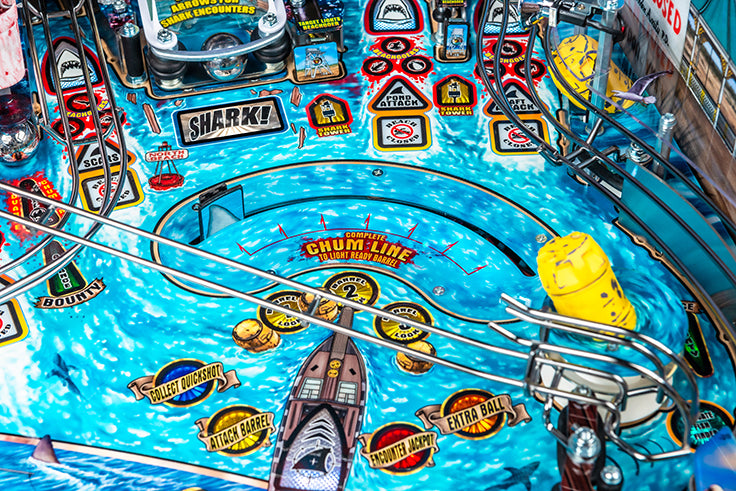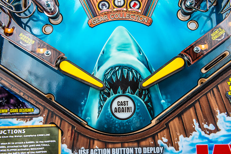 „Gerade als du dachtest, es wäre sicher, wieder ins Wasser zu gehen...“ Heute, zur Feier des 50jährigen Jubiläums von Jaws, legendärem Gaming- und Entertainment-Unternehmen, sind Stern Pinball, Inc. in Zusammenarbeit mit Universal Products & Experiences begeistert, ein spezielles Update anzukündigen, das Cinephile, Haifischköpfe und Sammler gleichermaßen begeistern wird. Die Feier ist mit dem Debüt des neuen Jaws 50th Anniversary Premium Edition Flipperautomaten gekennzeichnet, zusammen mit neuen Inhaltsverbesserungen, die über alle angeschlossenen JawsJaws-inspirierten Maschinen verfügbar sind.