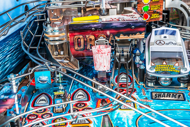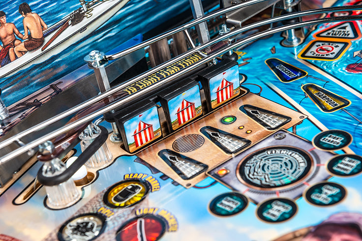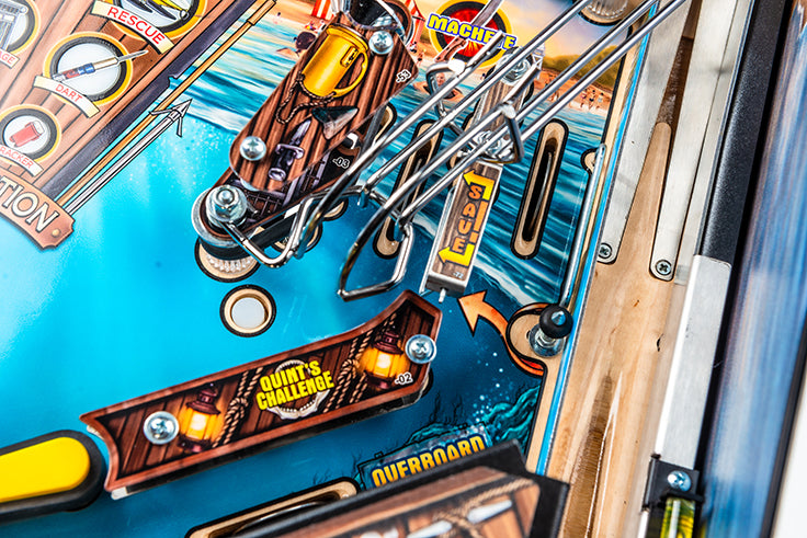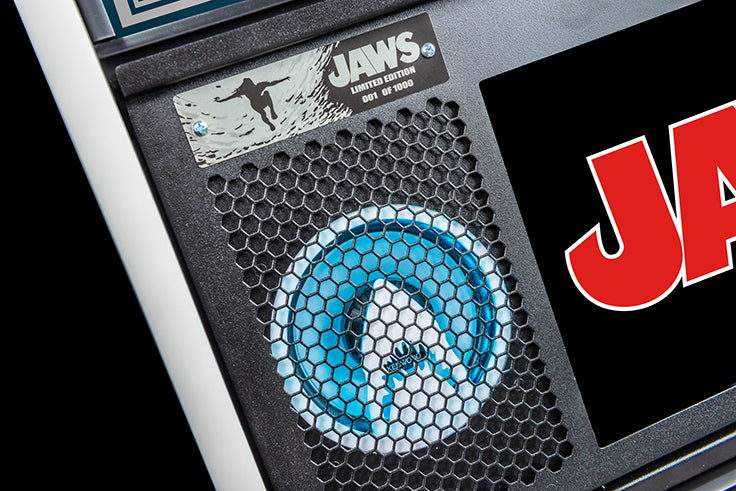 Anlässlich dieses goldenen Jubiläums hat das Stern-Team eine epische Version seines beliebten JawsKiefer-Flippenautomaten entwickelt. Die JAWS 50th Anniversary Premium Edition verfügt über ein neu gestaltetes Spielfeld mit glitzerverstärktem Kunstwerk und pulverbeschichteten Drahtform-Rampen aus Messing. Dieses Sammlerstück verfügt auch über einen unverwechselbaren 50th Anniversary Hologramm-Aufkleber zusammen mit einem einzigartigen Translite und Schrank-Abziehbilder. Der Flipperautomat ist mit einem auffälligen „Blood Red“ Rüstungskit ausgestattet, das passende Beine, Scharniere, Frontform und Seitenrüstung mit Standard-Premiumform umfasst.