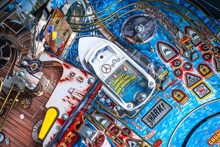 „Gerade als du dachtest, es wäre sicher, wieder ins Wasser zu gehen...“ Heute, zur Feier des 50jährigen Jubiläums von Jaws, legendärem Gaming- und Entertainment-Unternehmen, sind Stern Pinball, Inc. in Zusammenarbeit mit Universal Products & Experiences begeistert, ein spezielles Update anzukündigen, das Cinephile, Haifischköpfe und Sammler gleichermaßen begeistern wird. Die Feier ist mit dem Debüt des neuen Jaws 50th Anniversary Premium Edition Flipperautomaten gekennzeichnet, zusammen mit neuen Inhaltsverbesserungen, die über alle angeschlossenen JawsJaws-inspirierten Maschinen verfügbar sind.