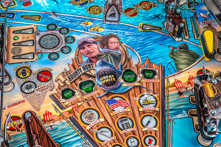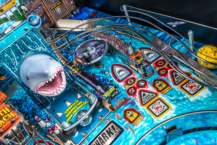 „Gerade als du dachtest, es wäre sicher, wieder ins Wasser zu gehen...“ Heute, zur Feier des 50jährigen Jubiläums von Jaws, legendärem Gaming- und Entertainment-Unternehmen, sind Stern Pinball, Inc. in Zusammenarbeit mit Universal Products & Experiences begeistert, ein spezielles Update anzukündigen, das Cinephile, Haifischköpfe und Sammler gleichermaßen begeistern wird. Die Feier ist mit dem Debüt des neuen Jaws 50th Anniversary Premium Edition Flipperautomaten gekennzeichnet, zusammen mit neuen Inhaltsverbesserungen, die über alle angeschlossenen JawsJaws-inspirierten Maschinen verfügbar sind.