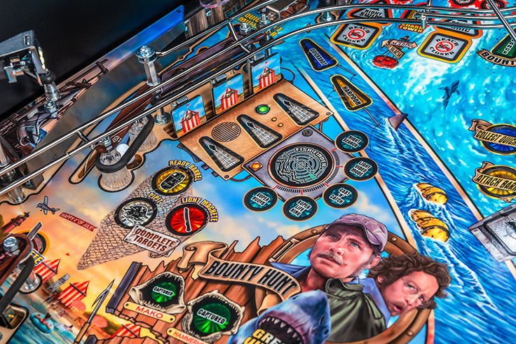 Anlässlich dieses goldenen Jubiläums hat das Stern-Team eine epische Version seines beliebten JawsKiefer-Flippenautomaten entwickelt. Die JAWS 50th Anniversary Premium Edition verfügt über ein neu gestaltetes Spielfeld mit glitzerverstärktem Kunstwerk und pulverbeschichteten Drahtform-Rampen aus Messing. Dieses Sammlerstück verfügt auch über einen unverwechselbaren 50th Anniversary Hologramm-Aufkleber zusammen mit einem einzigartigen Translite und Schrank-Abziehbilder. Der Flipperautomat ist mit einem auffälligen „Blood Red“ Rüstungskit ausgestattet, das passende Beine, Scharniere, Frontform und Seitenrüstung mit Standard-Premiumform umfasst.