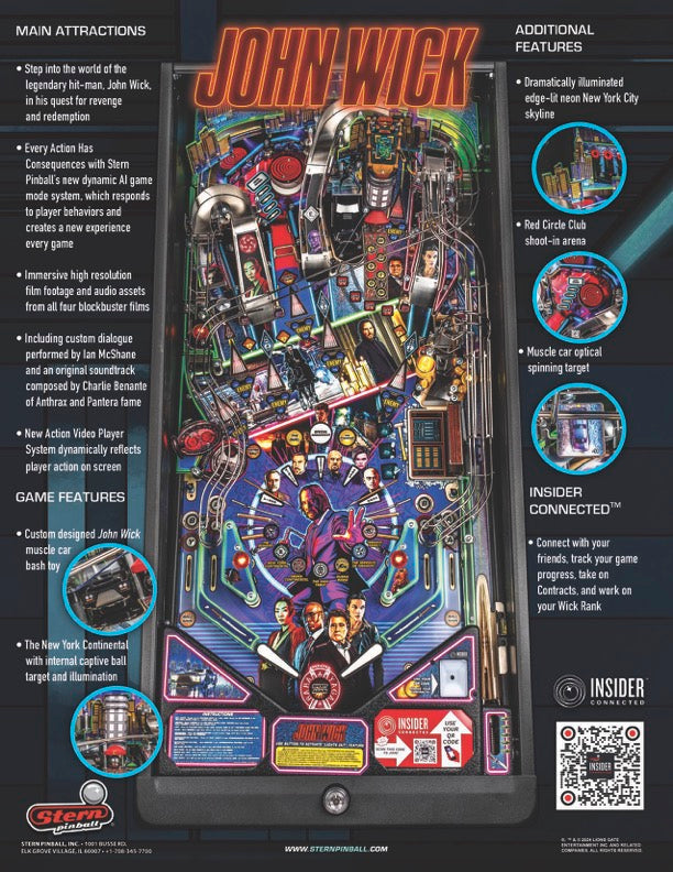 Stern Pinball, Inc. kündigt seine neueste Linie von Flipperspielen mit dem größten Attentäter der Welt, John Wick an. Die Spieler, die in Zusammenarbeit mit Lionsgate entwickelt wurden, werden die aufregenden und actiongeladenen Milliarden-Dollar-Franchise John Wick mit filminspirierten mechanischen Features und Kunstwerken neben Sterns brandneuem dynamischen KI-Kampfsystem erleben. John Wick Flipperspiele sind in den Modellen Pro, Premium und Limited Edition (LE) erhältlich. Das John Wick-Film-Franchise wird von Basil Iwanyk und Erica Lee von Thunder Road produziert, zusammen mit Franchise-Regisseur Chad Stahelski über seine 87Eleven Entertainment-Produktionsfirma.