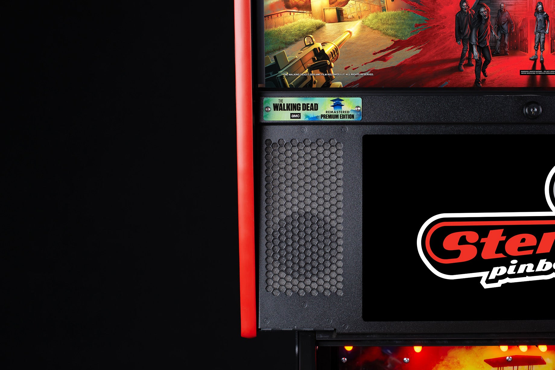 Das Walking Dead Remastered verfügt über die SPIKE 3-Technologie-Plattform der nächsten Generation von Stern, die ein größeres 18,5-Zoll-Full-HD-Display mit echter Farbtiefe sowie einen leistungsstärkeren Prozessor und ein neues High-Fidelity-Audiosystem enthält. Die Spieler werden vollständig überarbeitete 3D-renderte Grafiken und benutzerdefinierte Animationen erleben, die dem Punktmatrix-Display vom ursprünglichen Flipperautomaten huldigen. Die SPIKE 3-Elektronik verfügt außerdem über eine effizientere Stromversorgung, eine verbesserte WLAN-Unterstützung und drahtlose Kopfhörerfunktionen. Diese Version wird auch ein aktualisiertes Anpassungssystem für die Schrankbeleuchtung enthalten, das eine interne und externe Ausdrucksbeleuchtung auf allen Versionen des Spiels ermöglicht.