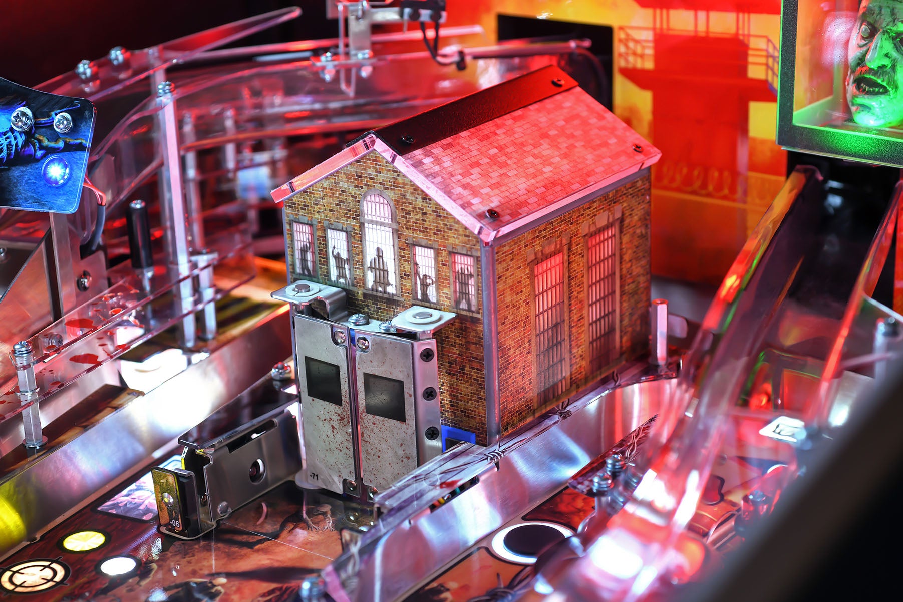 In Stern Pinballs The Walking Dead Remastered Flipperspiel werden die Spieler gegen Spaziergänger kämpfen und Schlüsselszenen von The Walking Dead in einem immersiven physischen Flippererlebnis wie kein anderes überleben. Das Entwicklungsteam unter der Leitung von John Borg, dem Designer des Originalspiels, hat eine moderne Version des ursprünglichen Meisterwerks geschaffen. Das Spielfeld verfügt über verbesserte Versionen des Gefängnisgebäudes „Cell Block C“, eine Fahrrad-Mädchen-Rampe und ein interaktives Well Walker-Spielzeug. Das beliebte Armbrustgerät, das einen Flipper schießt, wurde überarbeitet und aktualisiert, um die Präzision und Flexibilität im Gameplay zu erhöhen. Das Spiel bietet auch neue RGB-Beleuchtung und beleuchtete Zombie-Köpfe auf den Schleudern.
